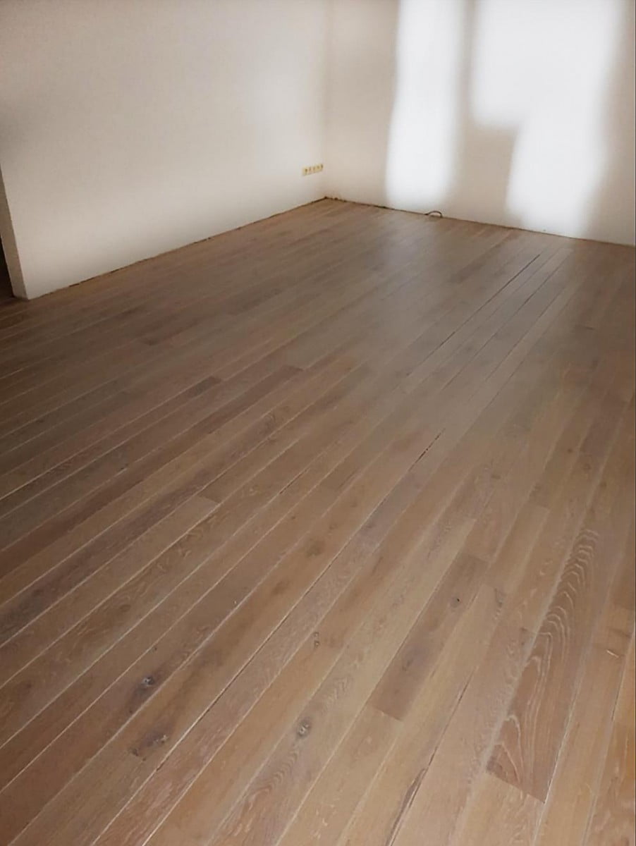 Deze planken vloer had z’n mooiste tijd gehad… Onze klant vroeg naar de mogelijkheden van vloerrenovatie. Wij zorgden voor een duurzame oplossing door de vloer een tweede leven te gunnen. Hij werd gerepareerd, de vellingen werden gefreesd en ten slotte zetten wij hem in de olie met een witte finish. Klaar voor een nieuwe ronde!